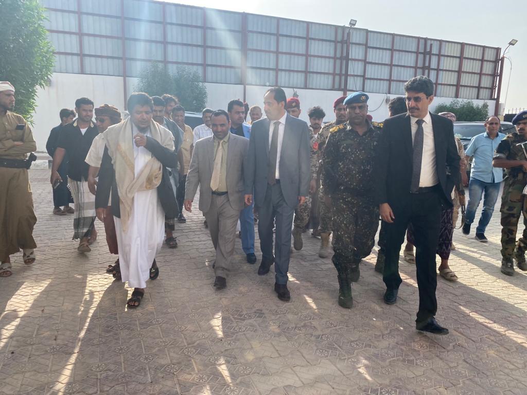 وكان في استقباله وزير الكهرباء والطاقة الدكتور أنور محمد كلشات والأمين العام للمجلس المحلي بالمحافظة الأستاذ سالم عبدالله نيمر ووكيل المحافطة لشؤون الشباب الأستاذ بدر سالم كلشات ومدير عام مكتب الشباب والرياضة بالمحافظة الأستاذ محمد عمر سويلم ومدير الأمن العميد مفتي سهيل صمودة ورئيس فرع إتحاد كرة القدم الإثنين عمر ومدير القصر الجمهوري الأستاذ أحمد عبدالرحمن بن حروف ونائب مدير عام مكتب الشباب الأستاذ عادل رزق خودم.