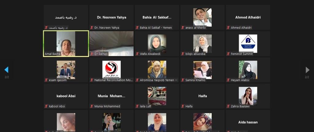 الأستاذة نبيلة الحكيمي، رئيسة المسار الحقوقي والإنساني، قدمت نبذة عن دور ومهام المسار الذي ترأسه في تيار التوافق الوطني ، وارتباط هذا الموضوع الذي نناقشه اليوم بطبيعة عمل المسار . وأكدت الحكيمي على أهمية ايقاف الحرب والبدء في عمليات الحوار وإحلال السلام وإعادة القانون والعمل به، وبأن تكون المرأة لها المشاركة والحماية الكافيتين، إضافة إلى توفير الخدمات الاساسية لهن. وعن مشاركة اللجنة الوطنية للمرأة في جلسة الاستماع ضمن الوفد الحكومي، قالت الدكتورة شفيقة سعيد، رئيسة اللجنة: "كان هناك مراعاة للظروف التي تمر بها اليمن من قبل لجنة السيداو، ولأسباب تراجع دور النساء نتيجة الحرب والظروف الصعبة التي تعيشها البلد."