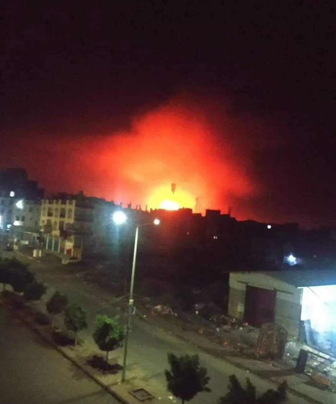 وقال سكان محليون "إن انفجارات عنيفة هزت العاصمة صنعاء؛ جراء غارات للتحالف على معسكر سلاح الصيانة ومحيطه الخاضع لسيطرة الحوثيين في منطقة الحصبة، وكذا معسكر النهدين، والحفا شرق العاصمة".