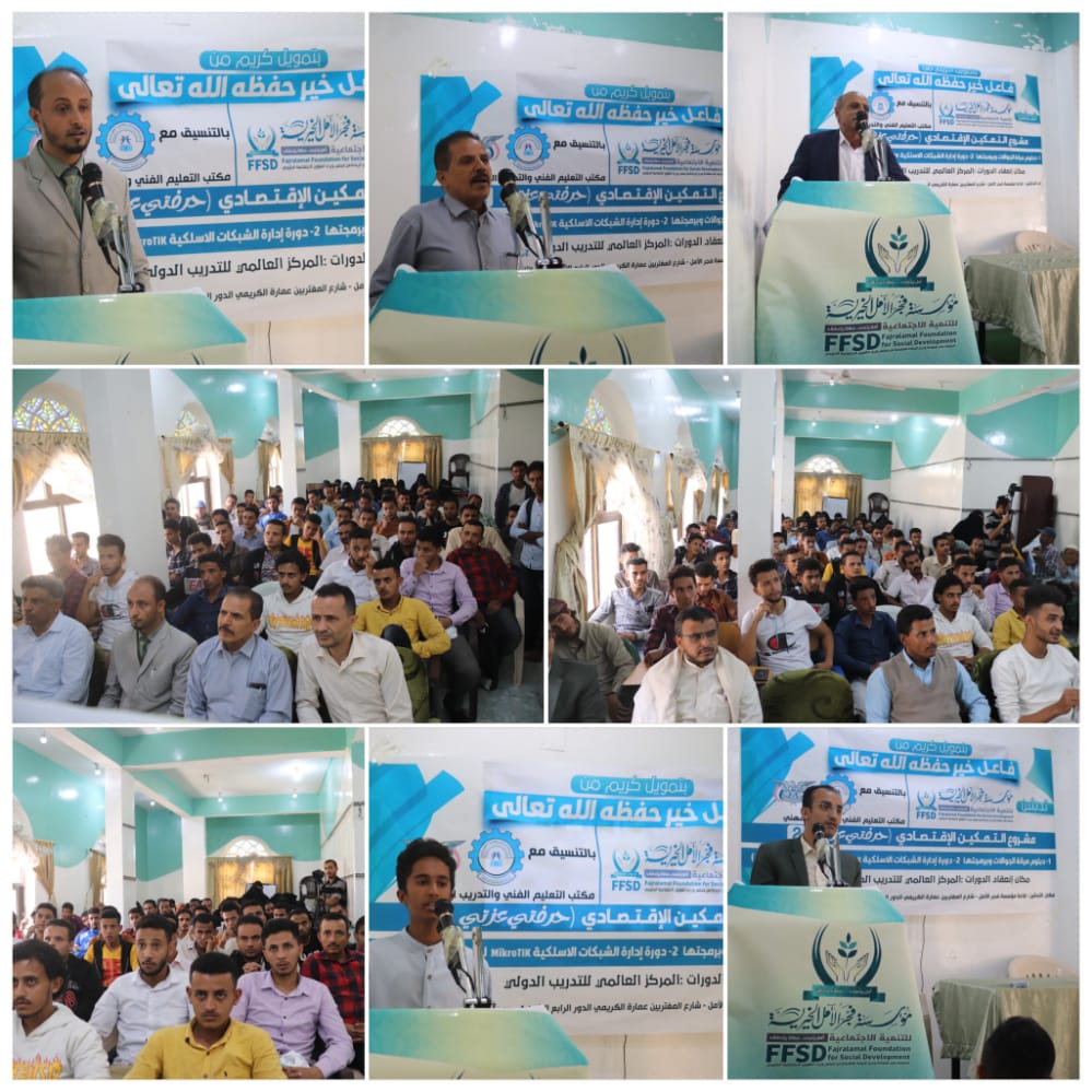 وفي كلمة الاستاذ عبده علي محمد مدير مكتب الشؤون الاجتماعية والعمل عبر عن شكره الجزيل للمؤسسة وللداعمين على تنفيذ مثل هكذا اعمل تهدف إلى صقل مهارات الشباب وتنمية قدراتهم وتحويلهم من دائرة الاحتياج إلى دائرة الإنتاج*