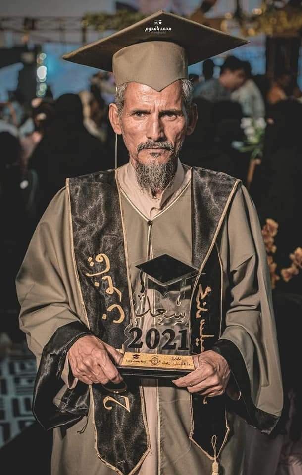 رغم كبر سنه احتفل المعمر "سعد محند سليمان محند الجدحي" بحصوله على درجة البكالوريوس في نخصص