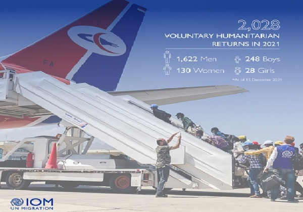 وقالت المنظمة في إحصائية بمناسبة اليوم الدولي للمهاجرين الذي يصادف يوم الـ 18 من ديسمبر من كل عام إنه"تم إجلاء 2028 مهاجراً(أفريقيا) من اليمن، منذ يناير حتى 15ديسمبر، شمل (1622) رجلاً، (130) امرأة، (248) طفلاً، (28) طفلة.