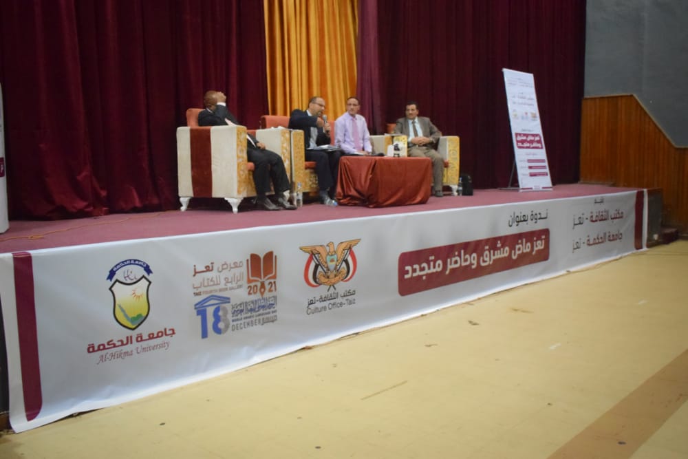 نظمت جامعة الحكمة فرع تعز بالشركة مع مكتب الثقافة بالمحافظة ندوة توعوية بعنوان تعز ماضِ مشرق وحاضر متجدد ضمن فعاليات مهرجان تعز الرابع للكتاب 2021م برعاية وزير الإعلام والثقافة الاستاذ معمر الإرياني ومحافظ محافظة تعز الاستاذ نبيل شمسان