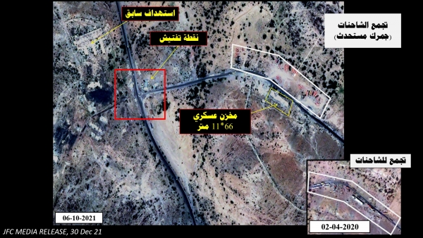 وأوضح التحالف، استخدام مليشيا الحوثي اليوم للمعسكر في إطلاق صاروخين بالستيين من داخل المعسكر باتجاه محافظة شبوه.
