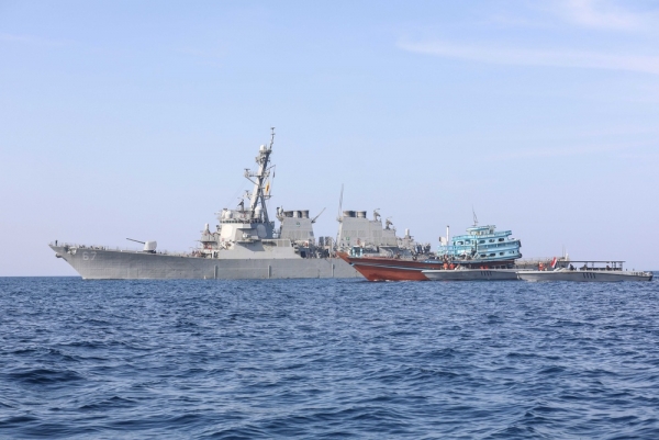 حظرت البحرية الأمريكية، سفينة صيد عديمة الجنسية في خليج عمان بعد أن تم ضبطها وهي تهرب أسلحة غير مشروعة ومواد محظورة في طريق بحري يُستخدم لتهريب الأسلحة إلى الحوثيين في اليمن.