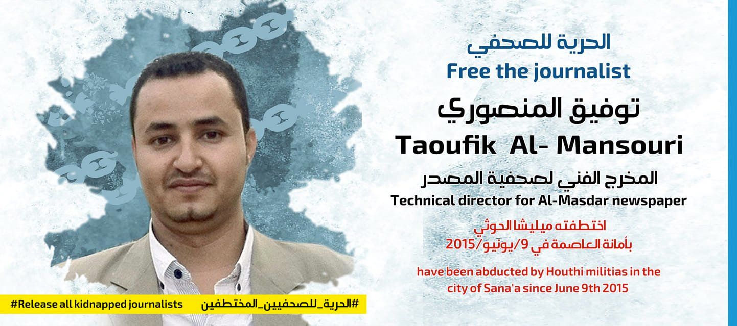 ويعاني الصحفي "توفيق المنصوري" من أمراض القلب وقصور وظائف الكلى والبروستات والسكري والروماتيزم وأمراض الجهاز الهضمي، منذ أن قامت جماعة الحوثي باختطافه مع 8 صحفيين في 9 يونيو/حزيران 2015، ومارست بحقهم أشكال التعذيب النفسي والجسدي والمعاملات اللاإنسانية.