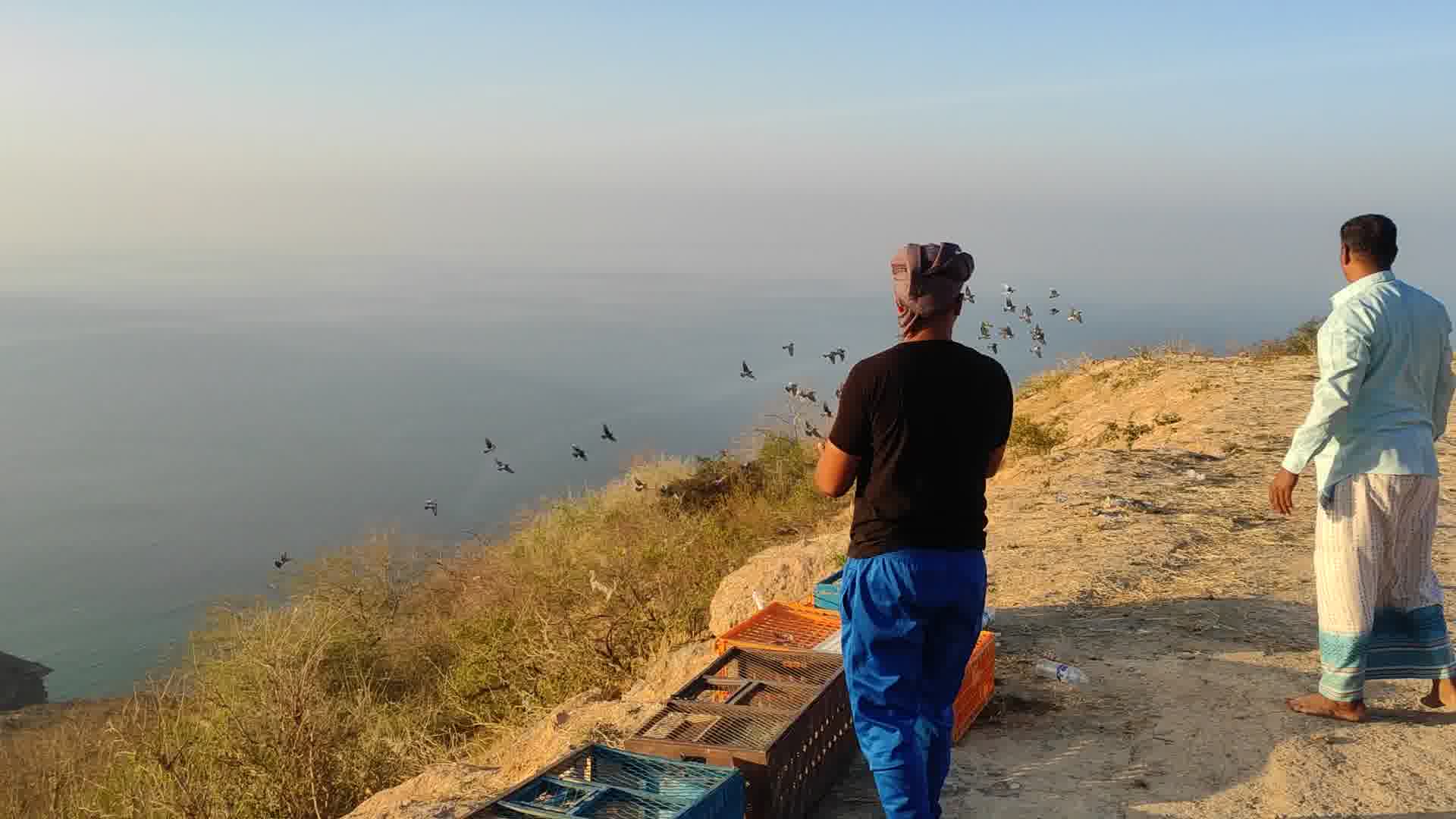 حضر لحظة انطلاق الحمام الزاجل عمر محمد عمر نائب رئيس اتحاد حضرموت الساحل للحمام وعدد من أعضاء الجمعية وهواة السابق في حضرموت