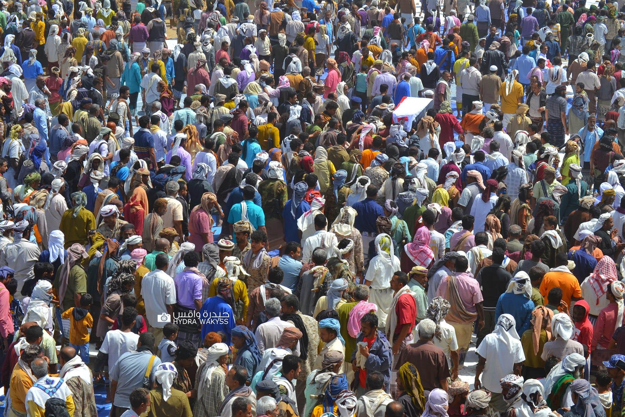 وتقدم مراسم التشييع قيادات أمنية وعسكرية وقيادة السلطة المحلية بمحافظة أبين، إضافة إلى جموع غفيرة من المواطنين.