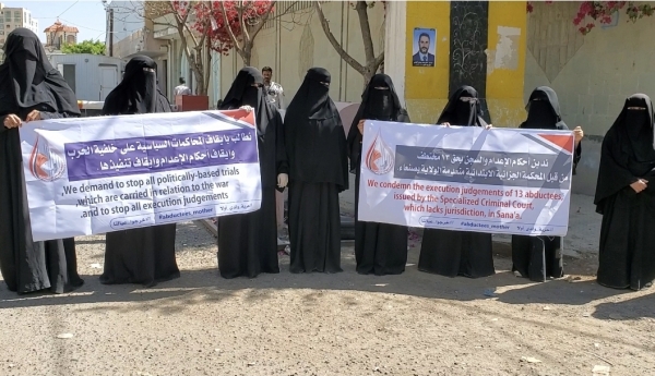 أدانت رابطة أمهات المختطفين إصدار أحكام الإعدام والسجن لسنوات بحق 13 مختطفاً في سجن الأمن السياسي بصنعاء بعد أن نُسبَت لهم تُهم انتزعت منهم تحت التعذيب بعد ممارسة الإخفاء القسري بحقهم لفترات متعددة وإقامة محاكمات هزلية، ودعت المليشيا إلى وقف المحاكمات السياسية.