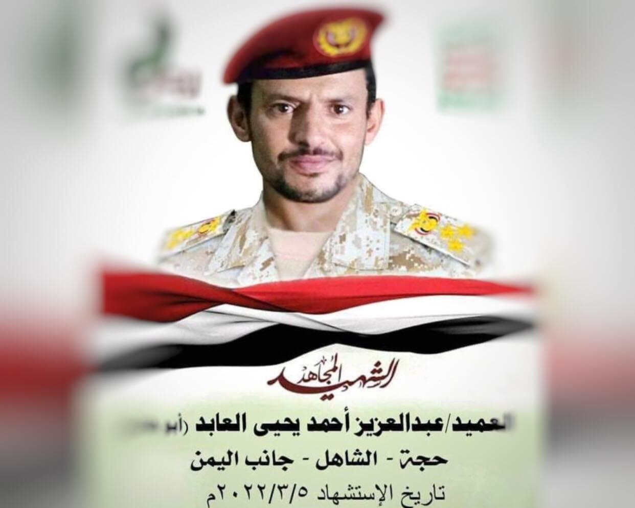 ونشرت وسائل إعلامية تابعة لمليشيا الحوثي الإيرانية مقتل القيادي الحوثي "عبد العزيز أحمد يحيى العابد" المكنى "أبو هاشم " ولم تحدد المكان المعركة التي قتل فيها.