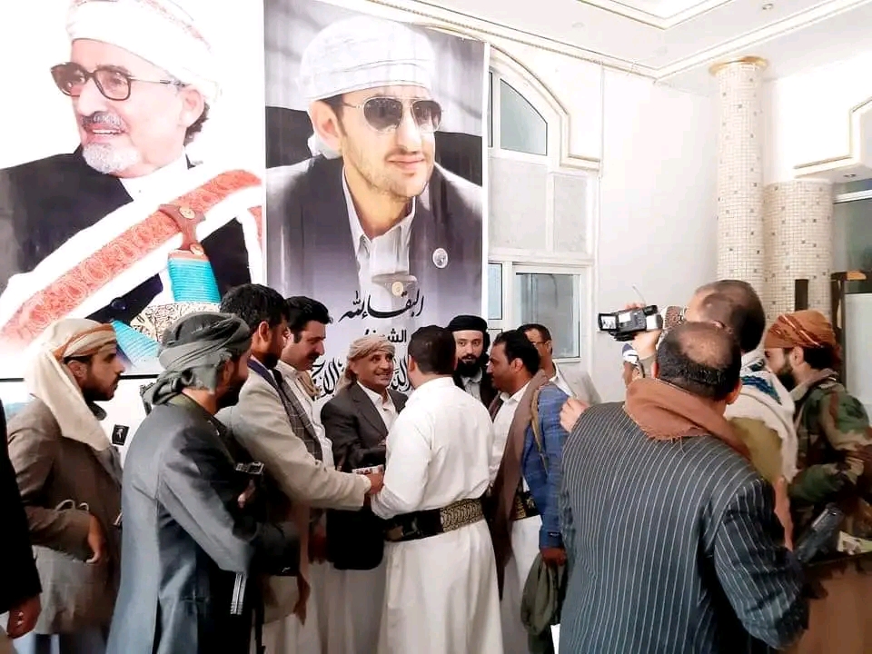 وقد استقبل الشيخ صادق بن عبدالله بن حسين الأحمر وأخيه الشيخ حمير جموع المعزيين في وفاة المغفور له بإذن الله الشيخ حسين الأحمر عضو مجلس النواب.