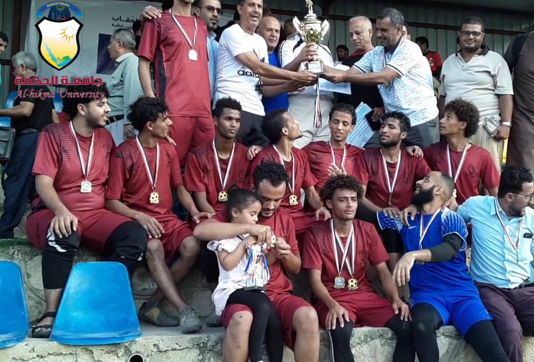 توج فريق جامعة الحكمة بطلاً للبطولة الرمضانية الكروية الثانية والثلاثين التي أقامتها الإدارة العامة للأنشطة في جامعة تعز والتي شاركت فيها الجامعات والمؤسسات والفرق الرياضية علي مستوي محافظة تعز.