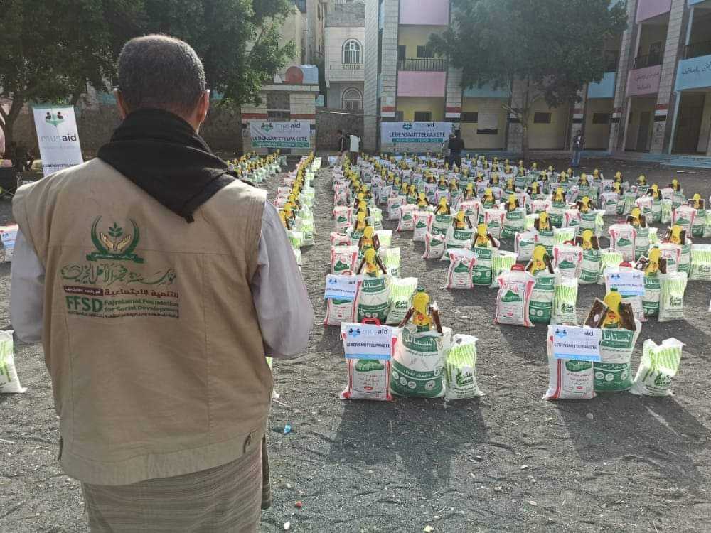 ضمن أنشطتها الرمضانية فجر الأمل توزع 180 سلة للاسر المتعففة والمعاقين بتعز