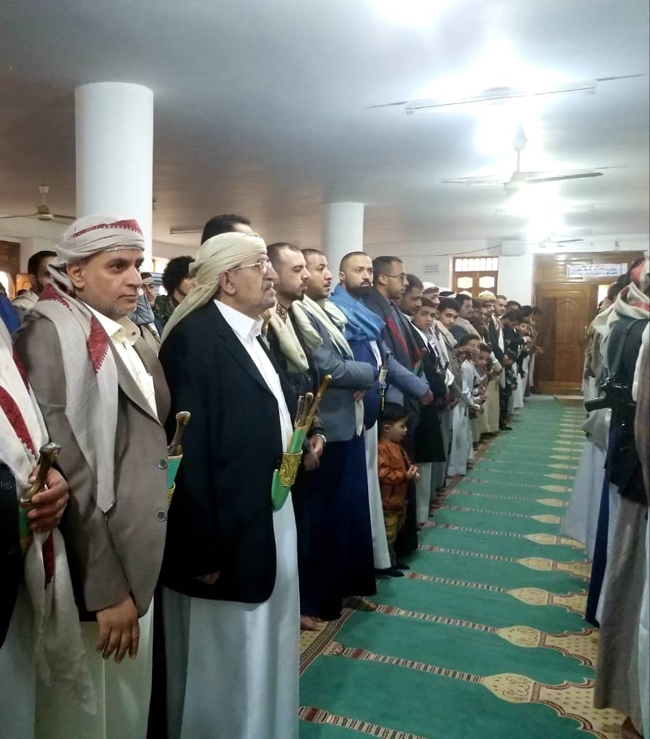 أدى الشيخ صادق بن عبدالله الأحمر شعائر صلاة عيد الفطر المبارك مع جموع المصلين بمسجد الشيخ الراحل عبدالله بن حسين الأحمر بصنعاء.