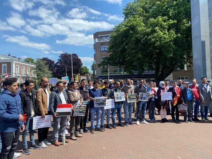 نظم العشرات من أبناء الجالية اليمنية في أوروبا، وقفة احتجاجية أمام المحكمة الجنائية الدولية في هولندا، للمطالبة بإنهاء الحصار المفروض من قبل ميليشيا الحوثي على محافظة تعز.