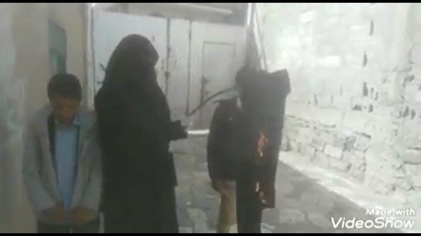 ونشر ناشطون مقطع فيديو، يوثق إحراق زوجة الأستاذ المختطف "الجعفري" لردائها، في محاولة ذاتية إلى لفت الانتباه لمعاناة أطفالها وأسرتها، في الوقت الذي استنجدت بكل قبائل اليمن عامة وقبيله بيت الجعفري خاصة لإنصافها من ظلم وبطش الشيخ الحميري.