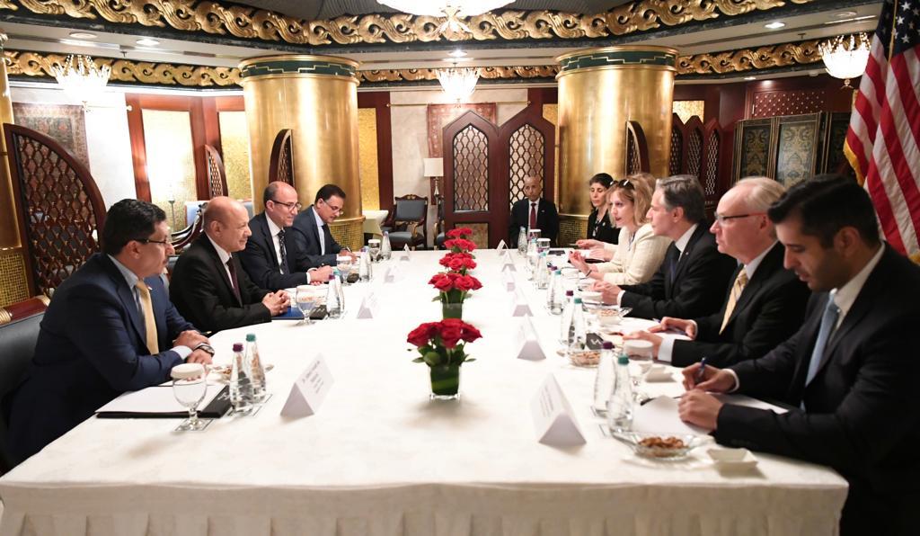 من جهته جدد وزير الخارجية الامريكي دعم بلاده لرئيس واعضاء مجلس القيادة الرئاسي، واصلاحات المجلس في مختلف المجالات، والتزام الولايات المتحدة بدعم وحدة اليمن وسيادته واستقراره، وتشجيع الحلفاء الاقليميين والدوليين، على تقديم مزيد من الدعم الاقتصادي والانساني لمجلس القيادة الرئاسي والحكومة والشعب اليمني، وكذلك التزام بلاده بمواصلة الضغط لدفع المليشيات على الوفاء بالتزاماتها بموجب اعلان الهدنة، وشدد على ضرورة التزام الحوثيين بتنفيذ كافة بنود الهدنة وخصوصا فتح معابر تعز.