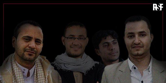 وقال البيان: "لم تُغيِّر النداءات المتكررة من العائلات شيئاً من مصير الصحفيين اليمنيين الأربعة الذي حكم عليهم الحوثيون بالإعدام في أبريل/نيسان 2020 بتهمة التجسس لصالح السعودية، علماً أنهم يعانون من مشاكل صحية ويطالهم الإهمال الطبي. فرغم الاستئناف الذي قدمه محاميهم، لم يُسجَّل أي تقدم في هذا الشأن، حيث لا يزال توفيق المنصوري وعبد الخالق عمران وأكرم الوليدي وحارث حميد ينتظرون معرفة مصيرهم، وهم الذين اختُطفوا في صنعاء عام 2015".