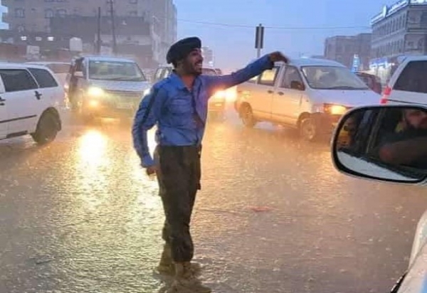كرم ناشطون شباب في مأرب، أمس السبت رجل المرور "غازي محمد" بعد انتشار صورة له وهو يواصل عملة وسط مطر غزير.