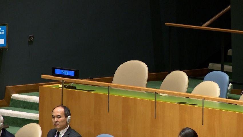 قاطع رئيس مجلس القيادة رشاد العليمي، اليوم الاربعاء، جلسة المناقشة العامة للجمعية العامة للأمم المتحدة، أثناء القاء الرئيس الايراني ابراهيم رئيسي كلمة بلاده في جلسة اليوم الثاني، التي انضم اليها العليم، والوفد المرافق في وقت لاحق.