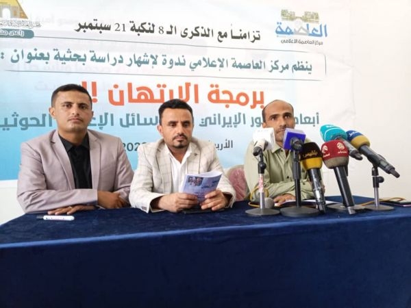 وثقت دراسة بحثية استراتيجية إيران في وسائل الإعلام الحوثية، والتي هدفت إلى استلاب العقل اليمني وطمس الهوية الوطنية، وانتزاع البلاد من محيطها العربي سياسياً وعسكرياً واقتصادياً وثقافياً.