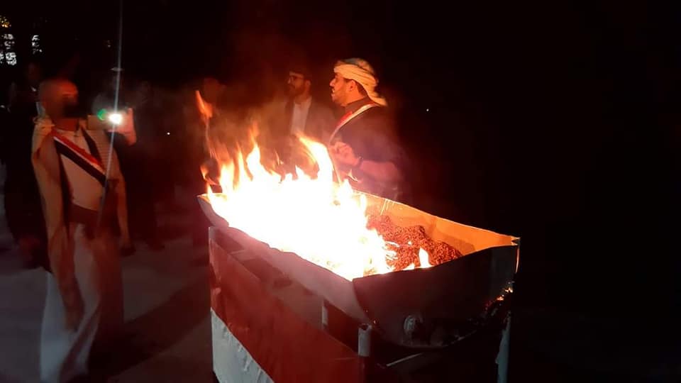 وحسب موقع "الأحمر نت" فقد رفعت صور العلم الجمهوري في منزل الشيخ الأحمر وتم ايقاد الشعلة، وهو تقليد سنوي يقام في منزل الشيخ الأحمر، احتفاء بهذه المناسبة العظيمة.