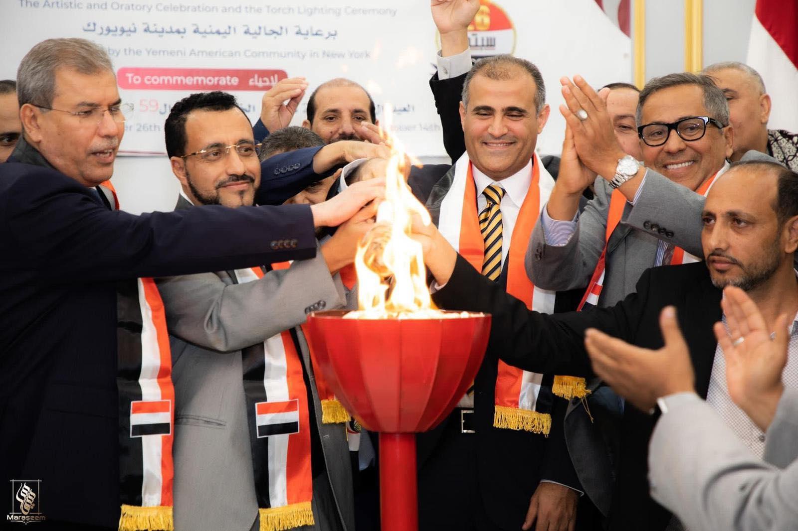 وفي يوم سبتمبري أكتوبري امتزجت فيه آلام الغربة بآمال الوطن، أقامت الجالية اليمنية في نيويورك احتفالية الذكرىً الستين لقيام ثورة سبتمبر ١٩٦٢ م ، وكذلك الذكرى التاسعة والخمسين لذكرى قيام الرابع عشر لثورة أكتوبر ١٩٦٣ م.