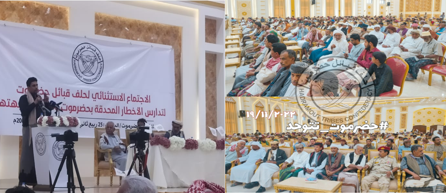 حيث عقد مقادمة ورؤوس "حلف قبائل حضرموت"، اليوم السبت، في مدينة المكلا اجتماعاً لتدارس ما أسماها "صراع الأطراف والأطماع السياسية التوسعية" لكل طرف والتي يحاول فرضها كأمر واقع بقوة السلاح.