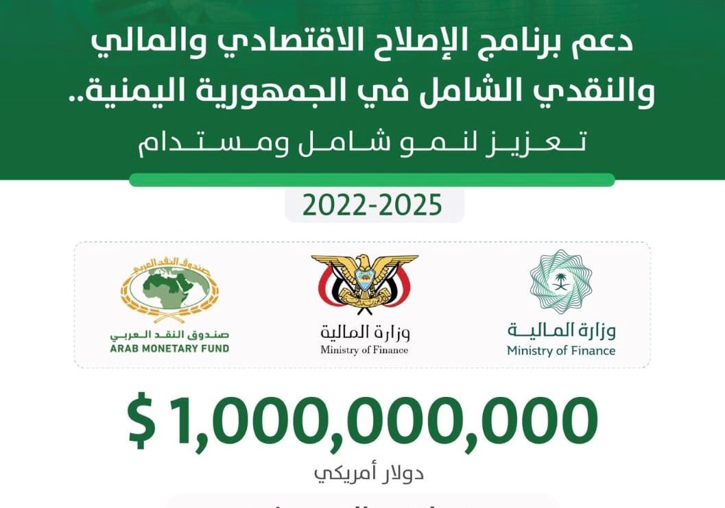 وكان قد جرى يوم الأحد التوقيع على اتفاق يهدف لإرساء مقومات الاستقرار الاقتصادي والمالي والنقدي في اليمن، وتعزيز وضعية المالية العامة، بمبلغ بمليار دولار خلال الفترة (2022-2025).