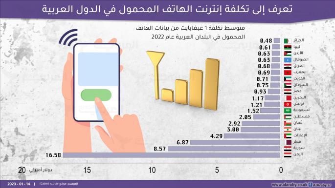 وبحسب الموقع، تباينت أسعار الغيغابايت الواحد، ليكون سعره في الجزائر هو الأرخص في قائمة الدول العربية، حيث بلغ متوسط سعر الغيغابايت الواحد فيها 0.48 دولار.