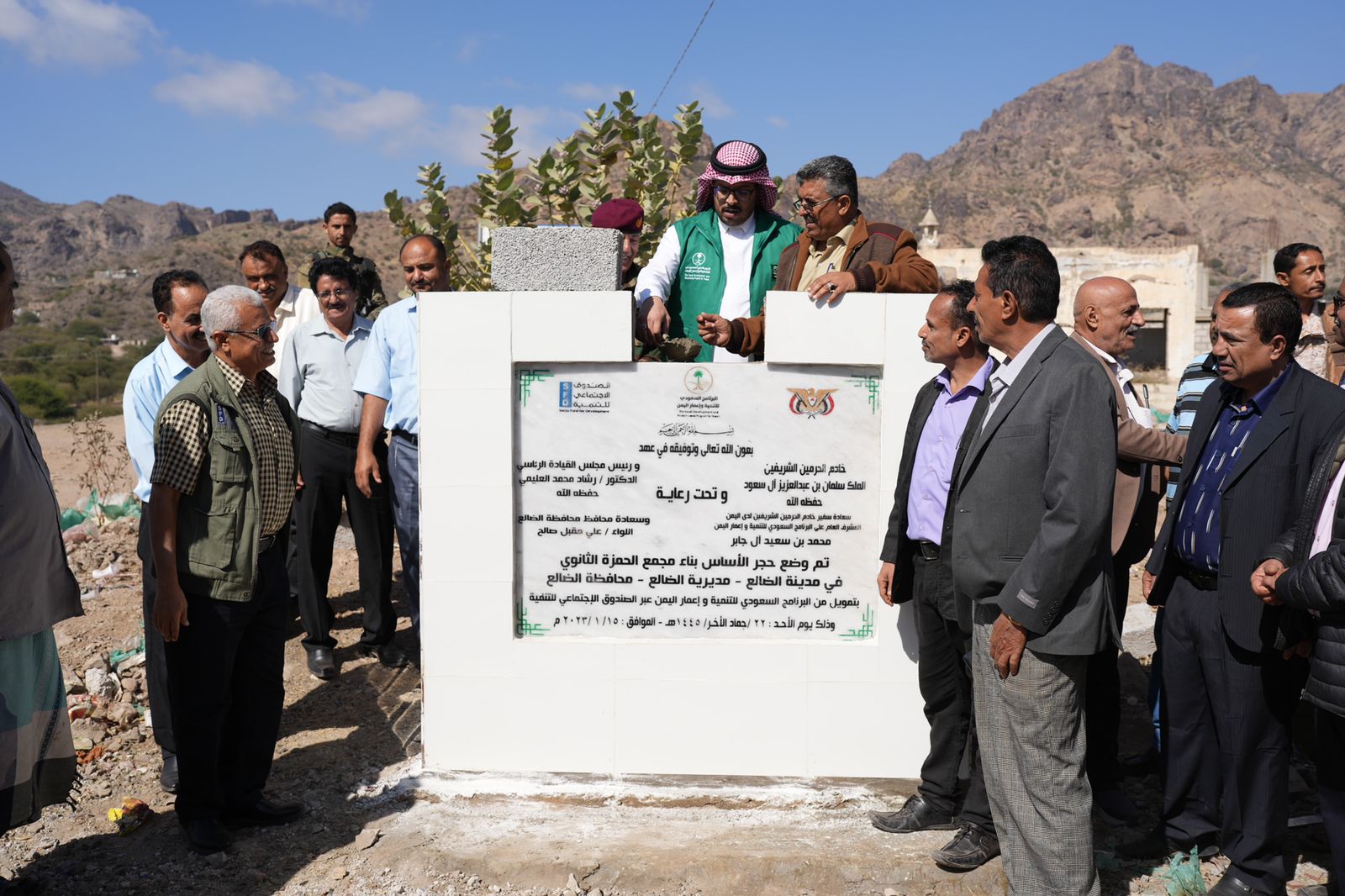 وضع البرنامج السعودي لتنمية وإعمار اليمن، اليوم، حجر أساس مدرسة الحمزة الثانوي في مدينة الضالع، بتمويل من البرنامج السعودي لتنمية وإعمار اليمن، وبإشراف وتنفيذ من الصندوق الاجتماعي للتنمية في الجمهورية اليمنية.