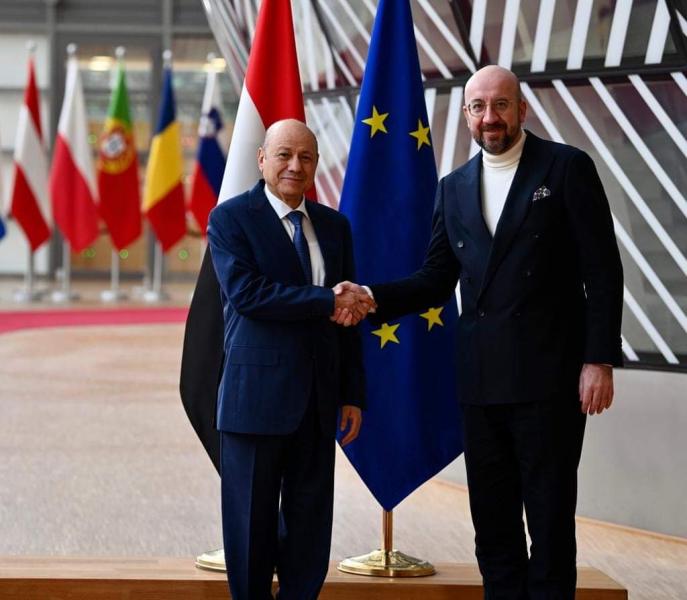 جاء ذلك في جلسة مباحثات رسمية عقدها العليمي مع رئيس المجلس الاوروبي شارل ميشيل الذي أكد التزام الاتحاد الأوروبي بدعم مجلس القيادة الرئاسي والحكومة، والشعب اليمني وانفتاحه على الشراكة السياسية والاقتصادية الواسعة بين الجانبين، ودعم كافة الجهود الرامية لتحقيق السلام والاستقرار، وتخفيف المعاناة الإنسانية الأسوأ في العالم.