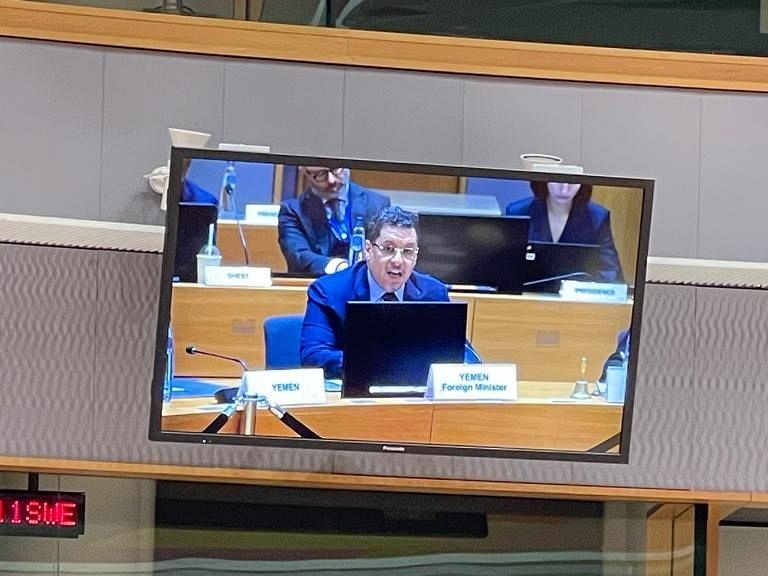 وأكد خلال مشاركته في جلسة الحوار الخاصة بشأن اليمن التي عقدتها اللجنة السياسية والأمنية في الاتحاد الأوروبي، أن الجانب الحكومي ينظر بإيجابية للجهود المبذولة للدفع بعملية السلام قدما وذلك "انطلاقا من الحكومة على إخراج اليمن من الوضع المأساوي الذي فرضته مليشيا الحوثي على الشعب اليمني"، وفقا لوكالة سبأ الحكومية.