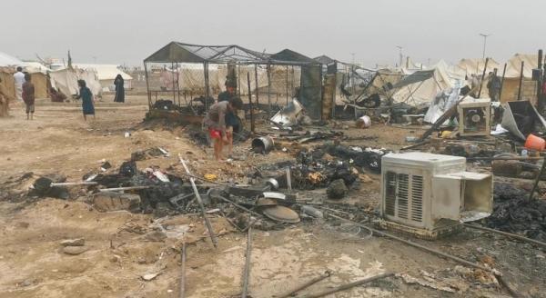 وأشارت إلى تسجيلها 66 حريقا في مخيمات النازحين عام 2020م، نتج عنها وفاة 5 أشخاص وإصابة 12 آخرين بينهم أطفال.