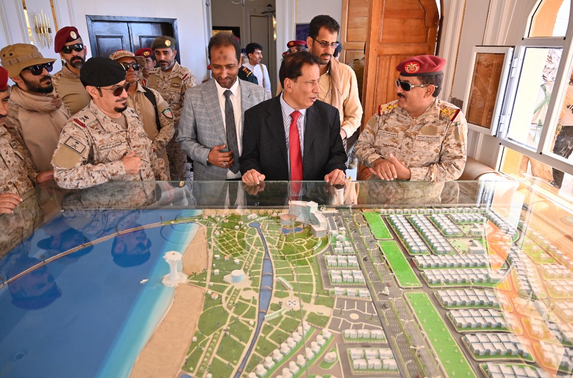 وفي السياق، اطلع وزير الدفاع اللواء الركن محسن الداعري، ومحافظ المهرة محمد علي ياسر، على سير الأعمال في مشروع مدينة المارينا السكنية الترفيهية بمدينة الغيضة، التابعة لشركة المارينا للإستثمار والتطوير العقاري.