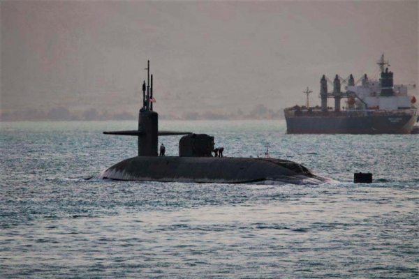 قالت البحرية الأميركية، السبت، إن غواصة تعمل بالطاقة النووية ومزودة بصواريخ موجهة تعمل في الشرق الأوسط دعما للأسطول الخامس الذي يتخذ من البحرين مقرا له.