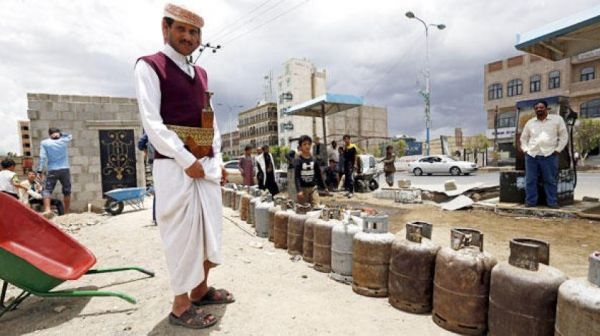 ويشكو سكان العاصمة صنعاء من صعوبة الحصول على أسطوانات الغاز المنزلي؛ نتيجة استمرار "الميليشيات بالتحكم بتوزيع الأسطوانات عبر عقال الحارات، بالإضافة إلى بيعه في السوق السوداء، الذي يسيطر عليها قيادات حوثية رفيعة".
