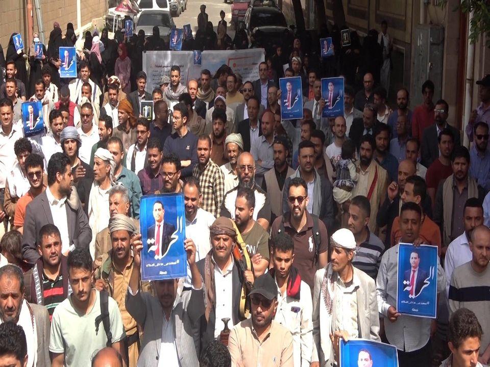 نظم موظفو شركتي "برودجي سيستمز" و"ميدكس كونكت" وأسرة بيت الحرازي، الأحد، وقفة احتجاجية، للمطالبة بإطلاق سراح مدير الشركتين عدنان الحرازي المختطف في سجون مليشيا الحوثي منذ خمسة أشهر.