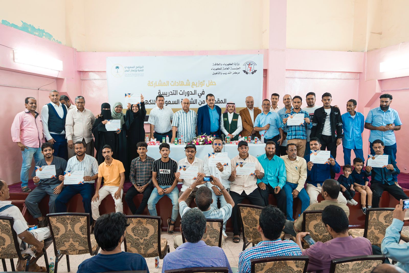 نُظّمَ في محافظة عدن حفلاً لتكريم 413 مشاركاً من منسوبي المؤسسة العامة للكهرباء اليمنية، والذين استفادوا من 13 دورة تدريبية اقيمت بالشراكة بين البرنامج السعودي لتنمية وإعمار اليمن، ووزارة الطاقة السعودية، والشركة السعودية للكهرباء، وجرى خلال الحفل تسليم الشهادات للمستفيدين.
