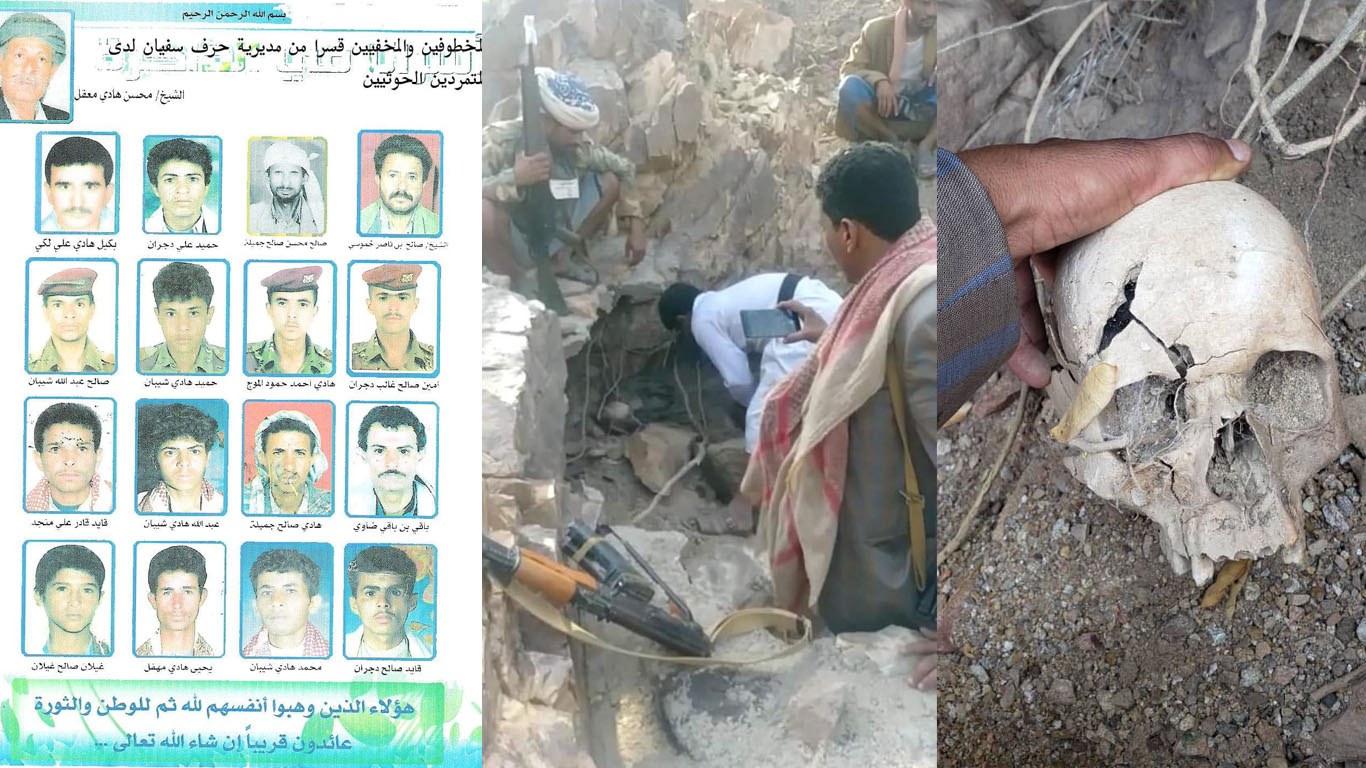 وعثر أواخر شهر يونيو الماضي على جثامين 16 مختطفاً من ضمن 17 اختطفتهم الميليشيا وأعدمتهم إبان الحرب السادسة آخر الحروب الست الأولى التي خاضتها ضد الدولة منتصف العام 2010، وذلك داخل كهف في منطقة جبلية وعرة بمديرية حرف سفيان شمال عمران.