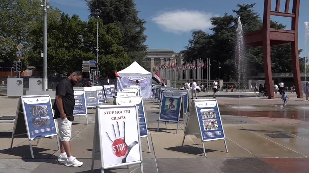 المعرض الذي احتضنته ساحة الكرسي المكسور بمدينة جنيف، احتوى عشرات الصور رافقها تعريف بمحتوى تلك الصور والتي تكشف انتهاكات جماعة الحوثي بحق الأطفال المشاركين في المراكز الصيفية التي تقيمها بمناطق سيطرتها ودور تلك المراكز في تجنيد الأطفال.