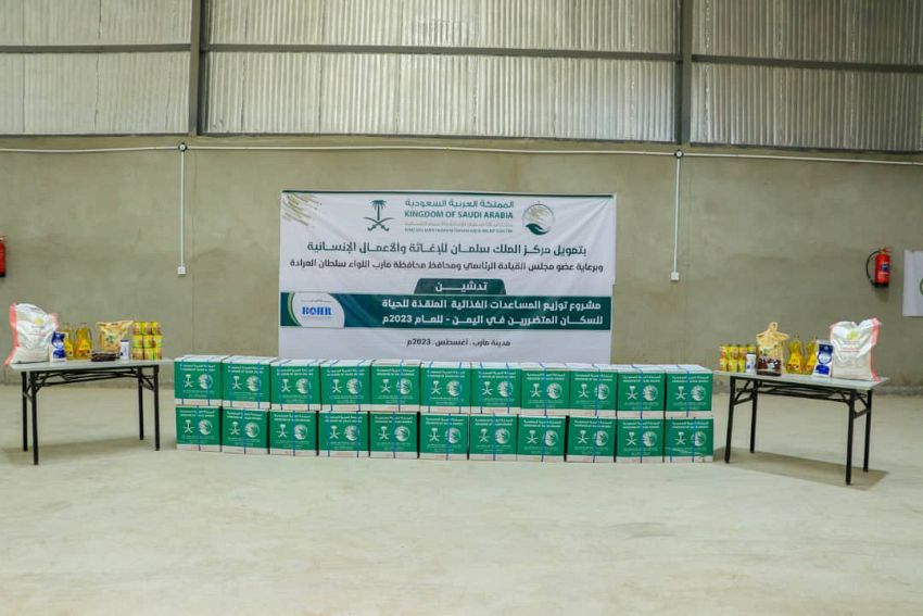 دشن مركز الملك سلمان للإغاثة والأعمال الإنسانية بمحافظة مأرب اليوم مشروع توزيع المساعدات الغذائية المنقذة للحياة للسكان المتضررين في محافظة مأرب للعام 2023م.