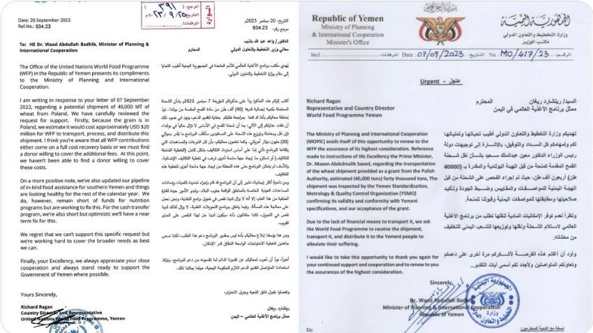 وقال وزير التخطيط والتعاون الدولي الدكتور واعد باذيب في منشور على حسابه بمنصة (إكس) تويتر سابقا، أمس الأربعاء، إن وزارة التخطيط والتعاون الدولي "خاطبت برنامج الغداء؛ نظرا لحرص الحكومة ودولة الرئيس على الاستفادة القصوى من المساعدة البولندية من القمح لنقل واستلام وتوزيع الشحنة".