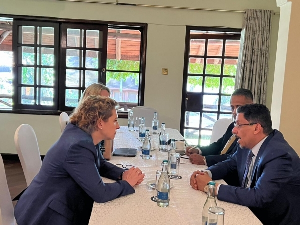 وذكرت وكالة سبأ الحكومية، أن بن مبارك التقى على هامش اجتماع قادة ميونخ المنعقد في العاصمة الكينية نيروبي، مع نائبة رئيس البرلمان الأوروبي نيكولا بير، لمناقشة تطورات الاوضاع في اليمن والمنطقة.