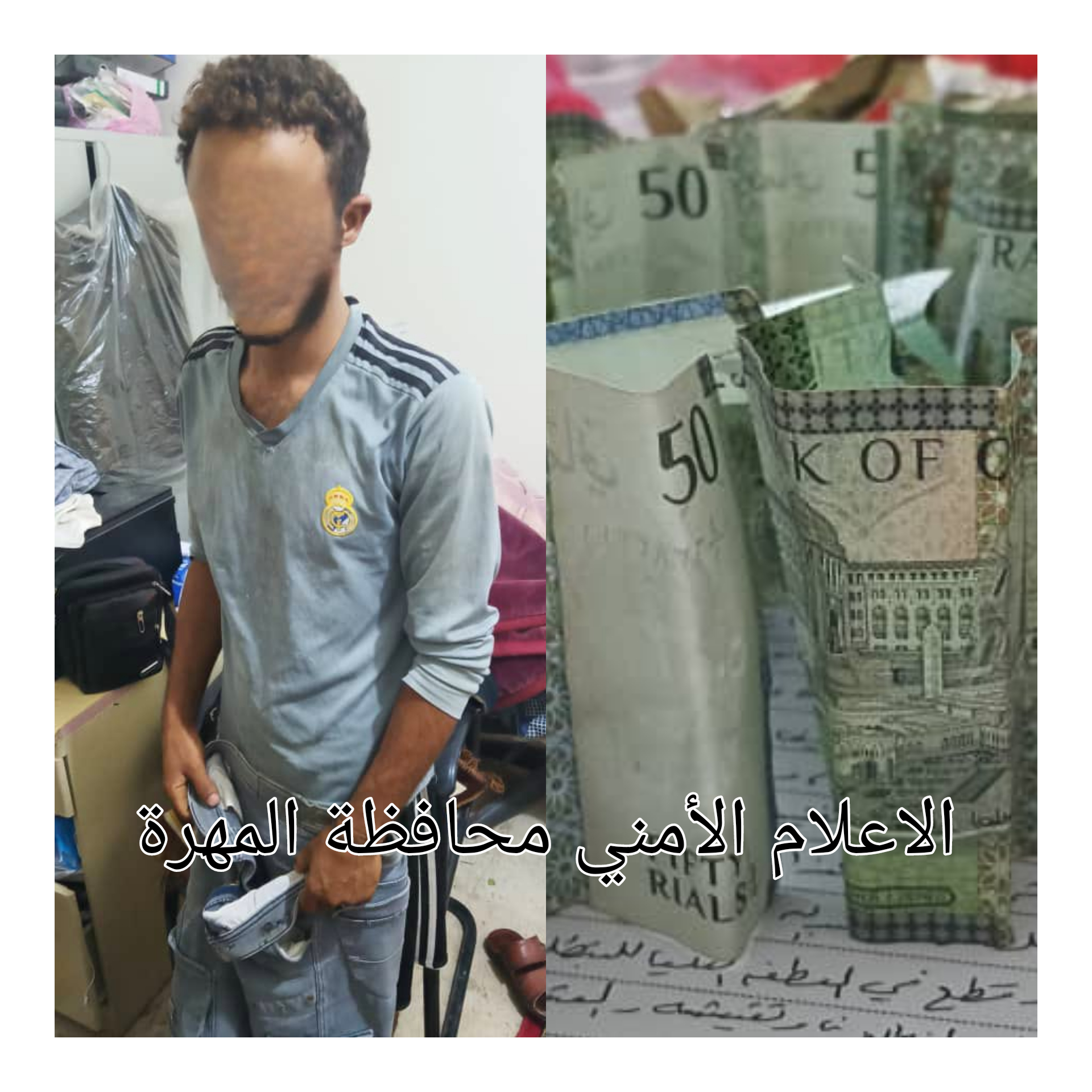 وأكد مصدر أمني أن المدعو(ع.س.م.ع) من خارج المحافظة كان يعمل في احد بوادي مديرية شحن وقام بسرقة مبلغ مالي كبير بالعملة العمانية و السعودية.