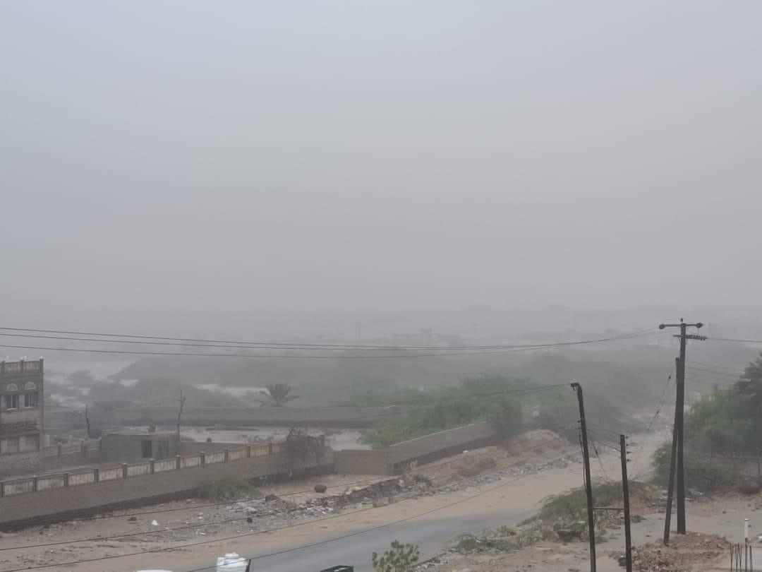 الى ذلك قال مركز الإنذار المبكر محافظة حضرموت إن المنخفض المداري يتمركز حاليا شمال الريدة الشرقية بسرعة رياح مركزية ٢٠ الى ٢٥ عقدة وقد تسبب بهطول أمطار شديدة الغزارة على تلك المناطق مع جريان للأودية بغزارة وارتفاع منسوب المياه في الشوارع ودخلت بعض المنازل وهناك حالات نزوح لعوائل في القرى.