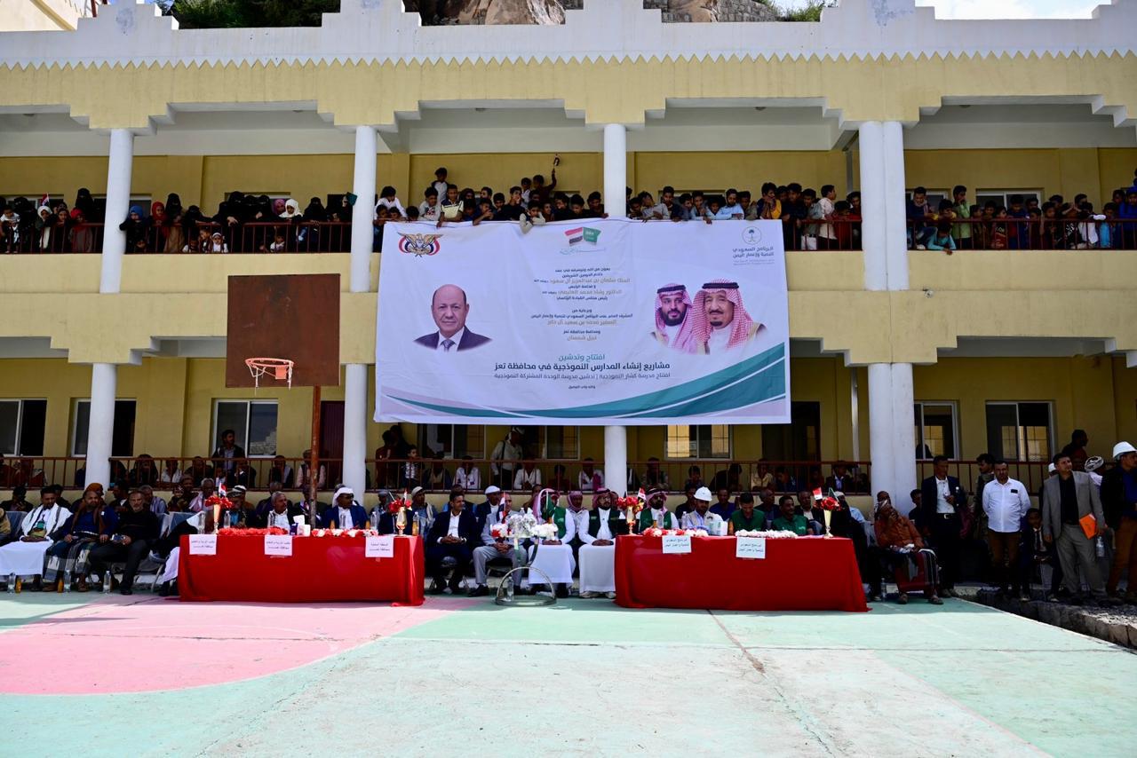 افتتح البرنامج السعودي لتنمية وإعمار اليمن مشروع إنشاء مدرسة عمر بن الخطاب النموذجية في الكشار بمحافظة تعز ، كما دشن مدرسة الوحدة المشتركة النموذجية في تعز، والتي تأتي بهدف دعم التعليم والتعلم، ضمن 52 مشروع ومبادرة تعليمية في مختلف المحافظات اليمنية، وضمن 229 مشروع ومبادرة تنموية في أنحاء اليمن.
