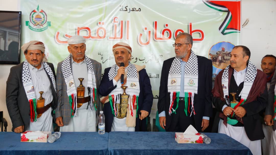 من جهته رحب القائم بأعمال ممثل حركة حماس في اليمن معاذ أبو شمالة بالشيخ حمير الأحمر والحاضرين مثمنا عاليا هذه الزيارة التي تعبر عن الوقوف إلى جانب الشعب الفلسطيني ومقاومته الحرة الشجاعة ومؤازرتهم في معركتهم ومعركة جميع الأحرار ضد العدو الصهيوني الغاصب.