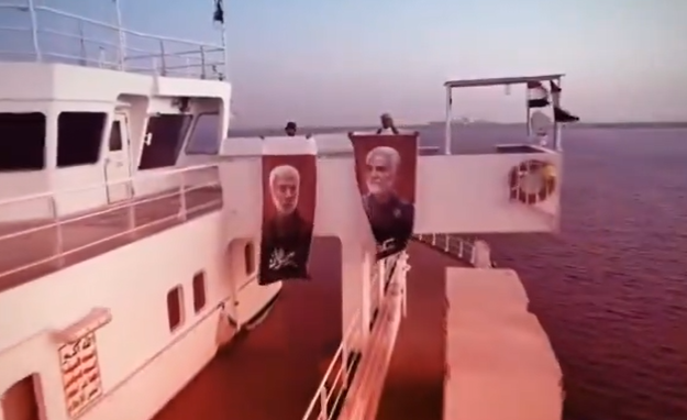 بثت وكالة "مهر" الإيرانية، اليوم الأحد، مشاهد لرفع صورة القائد السابق لفيلق القدس بالحرس الثوري، قاسم سليماني، على سفينة "جالاكسي"، التي استولى عليها الحوثيون في نوفمبر الماضي، وترسو في ميناء الحديدة غربي اليمن.