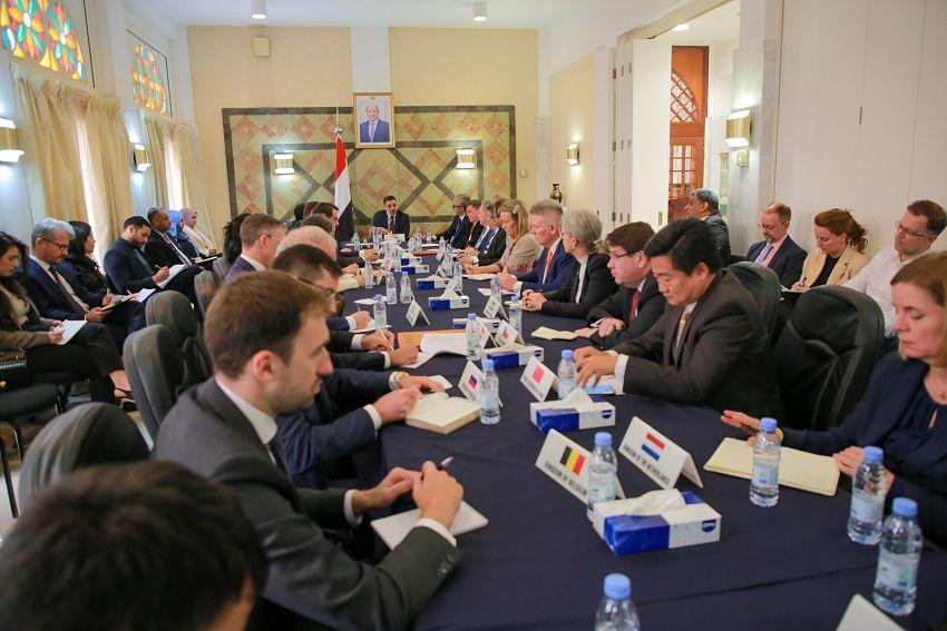 عقد وزير الخارجية الدكتور أحمد بن مبارك، يوم الاثنين، اجتماعا موسعا مع رؤساء البعثات الدبلوماسية لدول الاتحاد الأوروبي والدول دائمة العضوية في مجلس الأمن المعتمدين لدى اليمن.